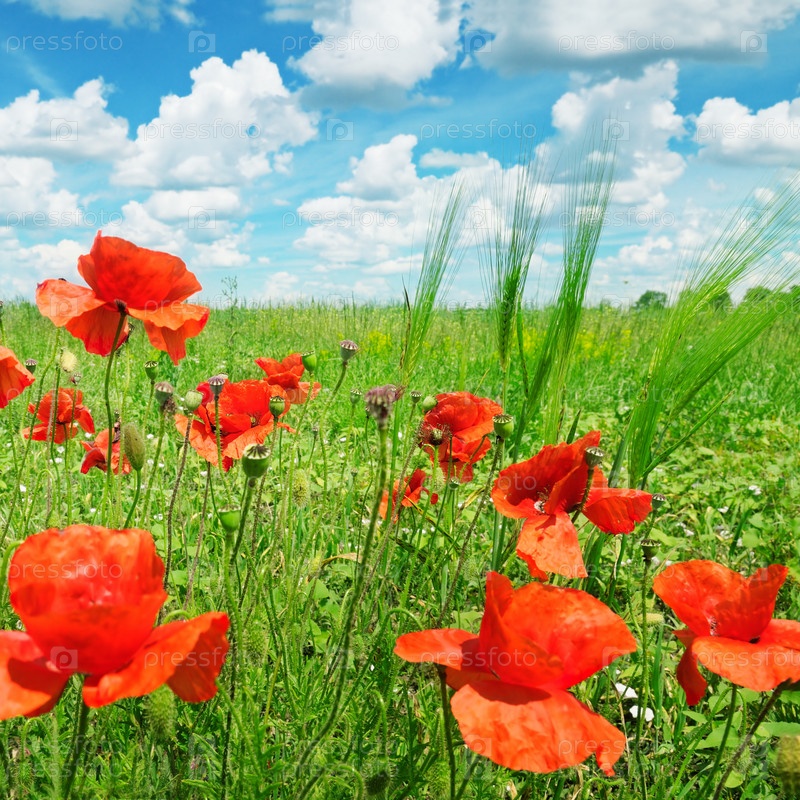 Маки на зеленом поле