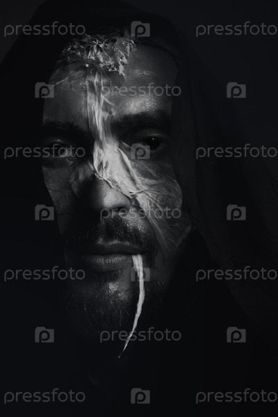 Мужчина в маске, с шарфом на голове