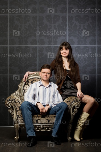 Молодая пара в роскошном кресле