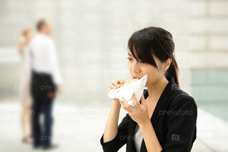 Бизнес-леди ест бутерброд