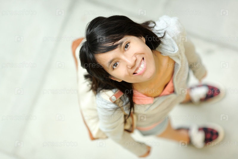 Девушка в торговом центре смотрит вверх