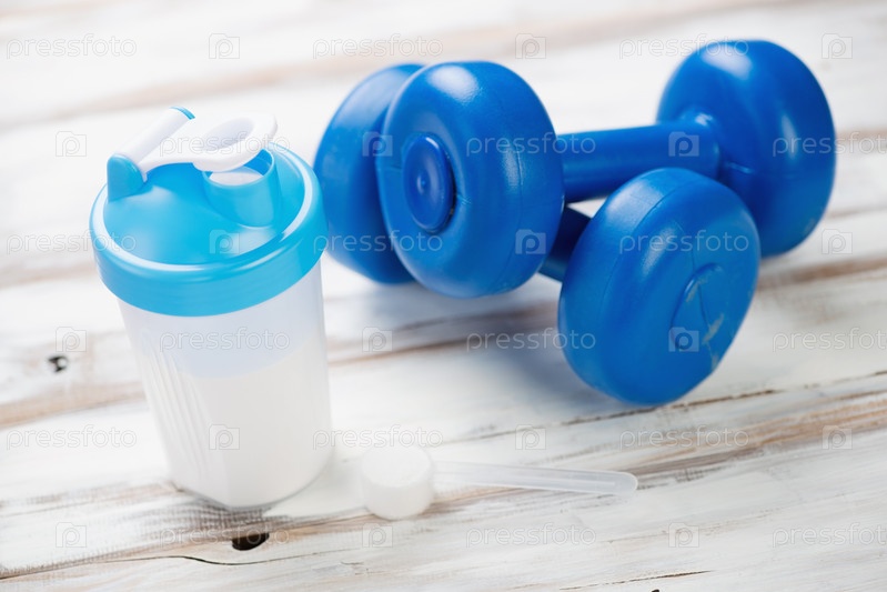 Шейкер с белком и гантели
