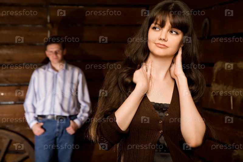 Семейная пара в деревянной избе