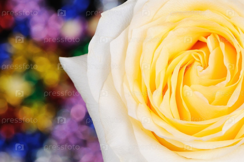 Желтая роза в вазе изолирована на многоцветном фоне