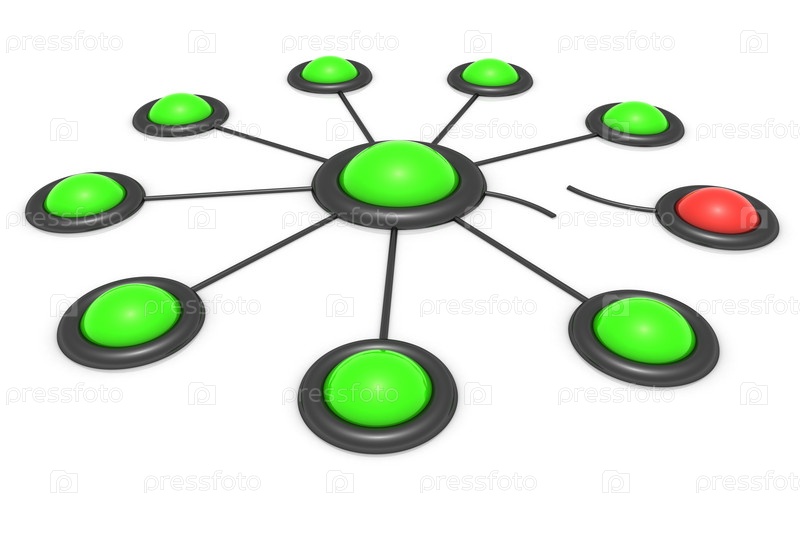 Кнопки, связанные между собой, и одна сломанная на белом фоне