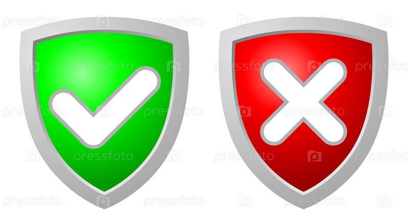 Зеленый и красный щиты на белом фоне