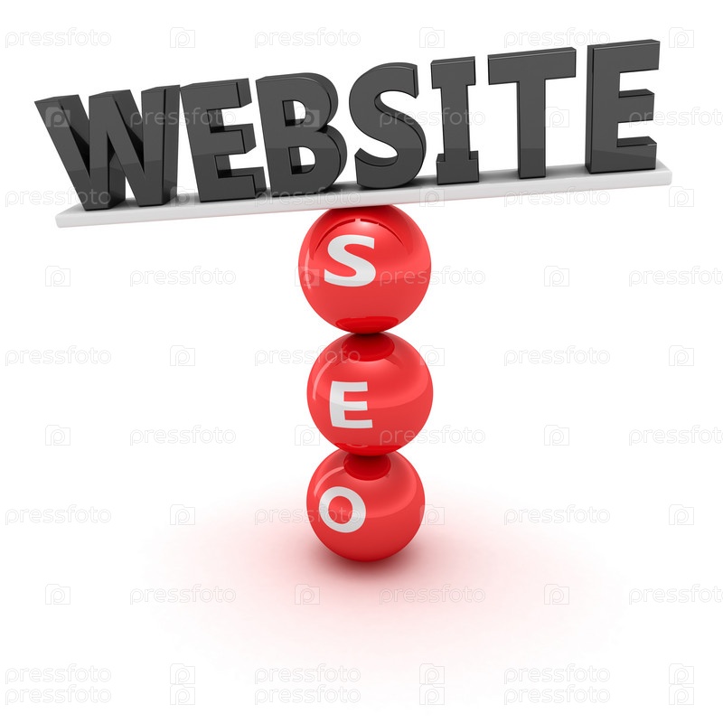Нестабильная конструкция из слова 'веб-сайт' на красных шарах с надписью SEO