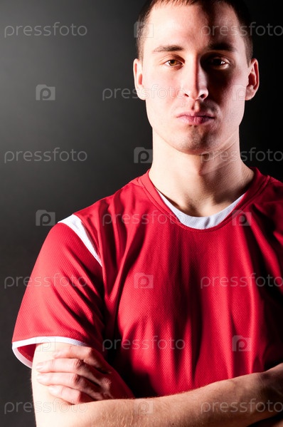 Футболист стоит, сложив руки
