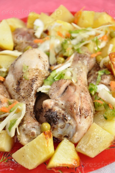 Печеный картофель с курицей крупным планом