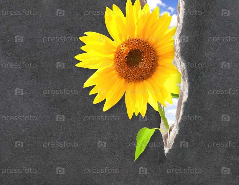 Подсолнух, проросший сквозь отверстие в бумаге