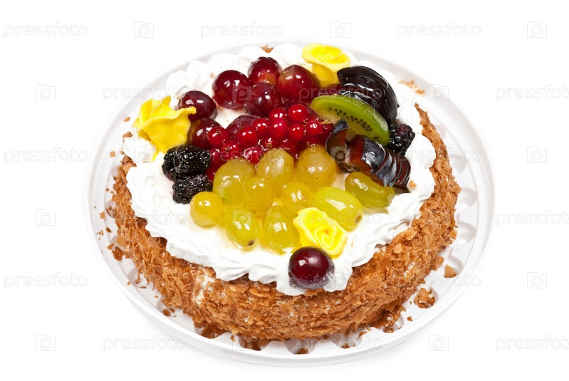 Торт, украшенный фруктами и взбитыми сливками