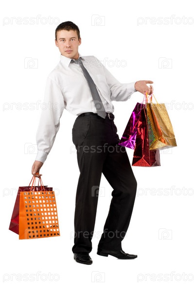Счастливый предприниматель с пакетами