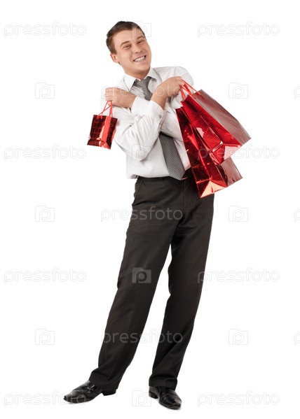 Счастливый предприниматель получает удовольствие от праздничного шопинга