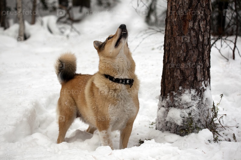 Собака на охоте, зима