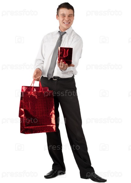 Счастливый предприниматель получает удовольствие от праздничного шопинга