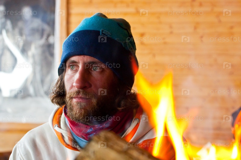 Мужчина с длинными волосами и бородой у костра