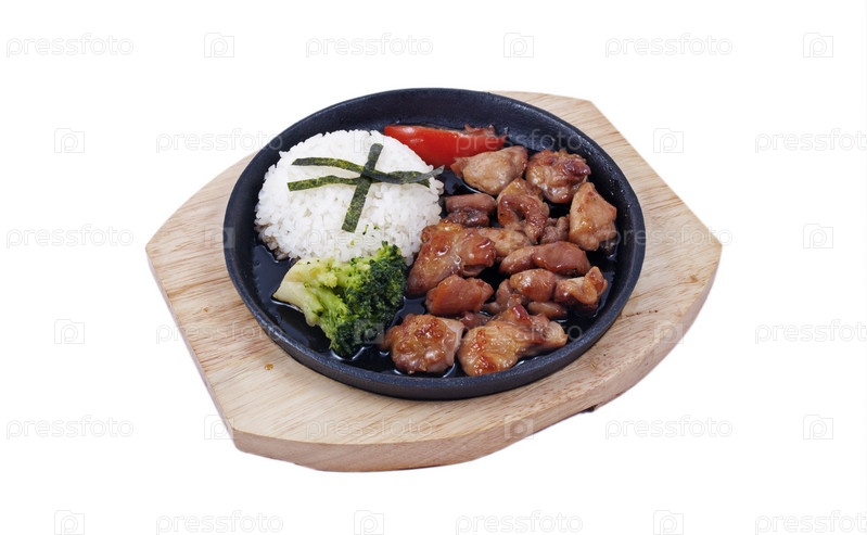 Жареное мясо с брокколи и рисом