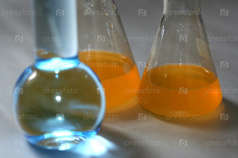 Стеклянные колбы с жидкостями