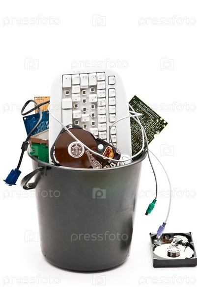 Комплектующие для компьютера в мусорном ведре