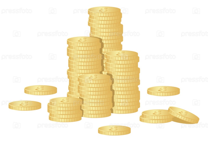 Стопки золотых монет, изолированы на белом