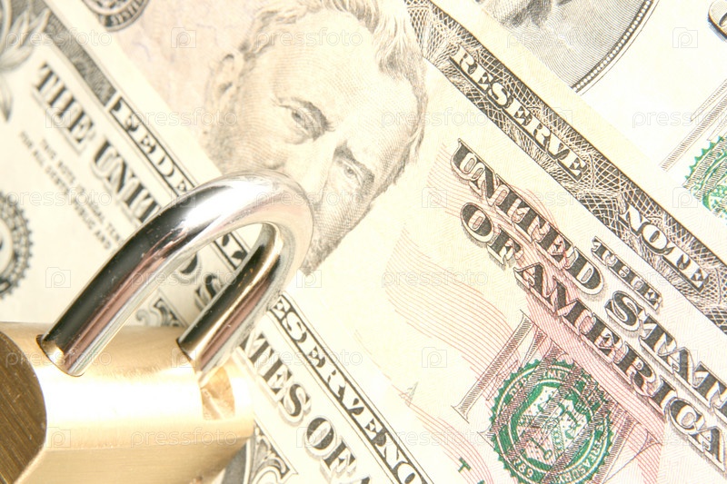Навесной замок на фоне долларов