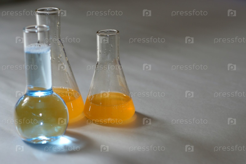 Стеклянные колбы с жидкостями