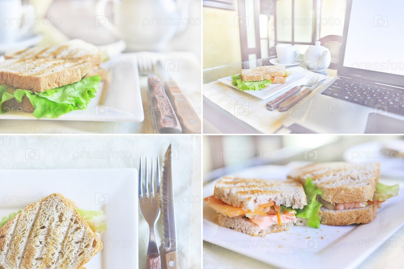 Коллаж из бутербродов на столе