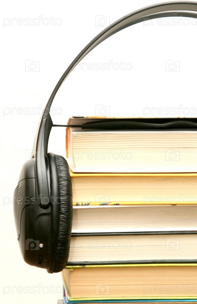Черные наушники на стопке книг