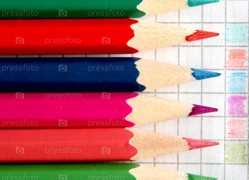 Цветные карандаши на фоне тетрадного листа