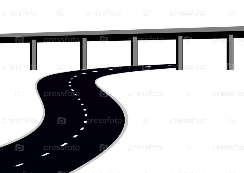Асфальтовая дорога и мост, изолированные на белом фоне
