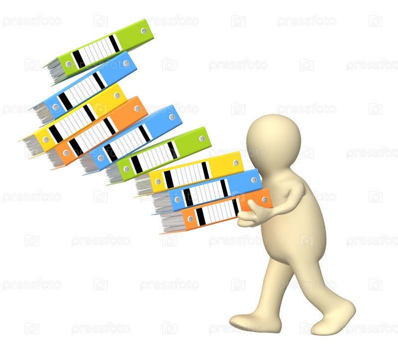 Человечек с канцелярскими папками, иллюстрация