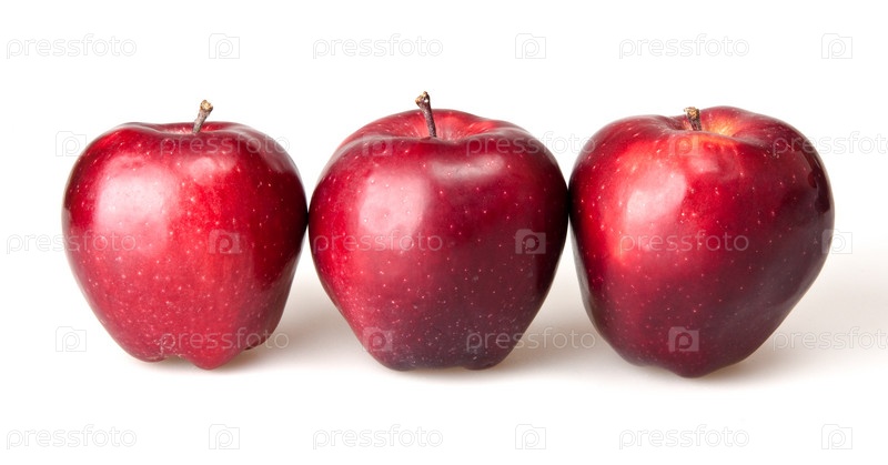 Три красных яблока на белом фоне