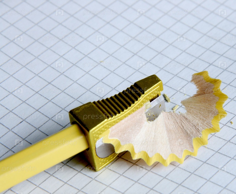 Карандаш и точилка на тетради в клетку