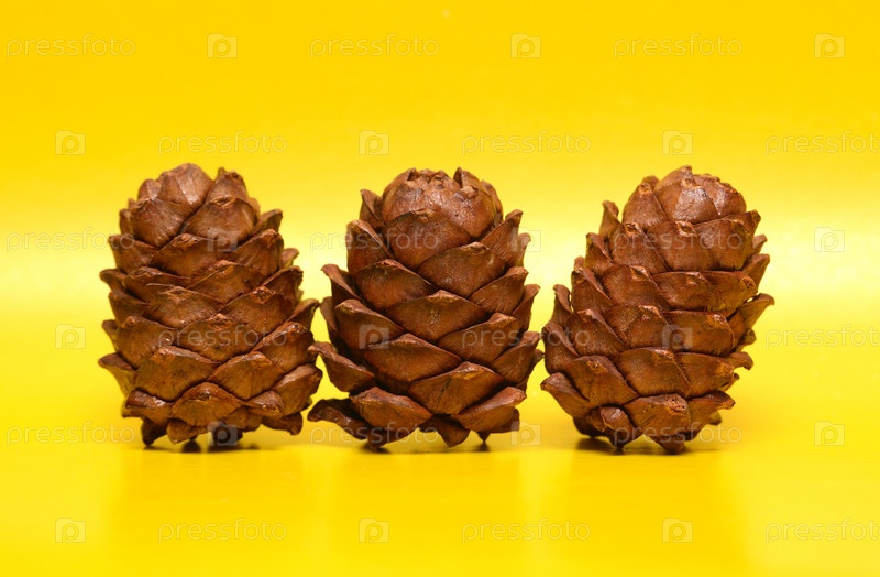 Кедровые шишки на желтом фоне