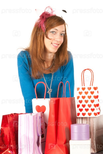 Улыбающаяся молодая женщина с пакетами для покупок