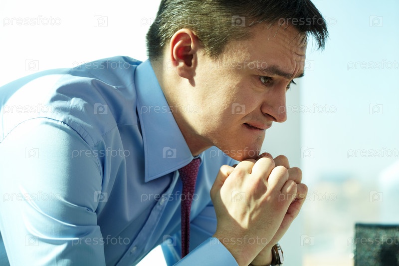 Бизнесмен напряженно думает