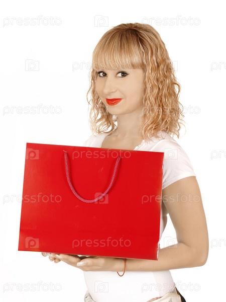 Девушка с красным бумажным пакетом