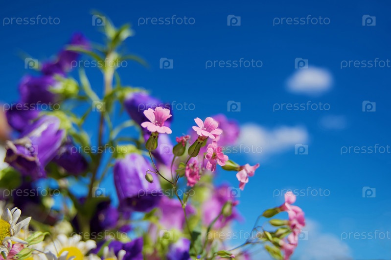 Полевые цветы на фоне синего неба (Крым)