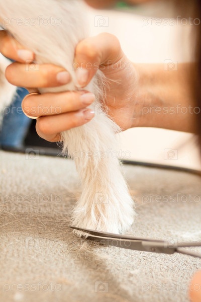 Парикмахер стрижет собаку породы Джек-Рассел терьер