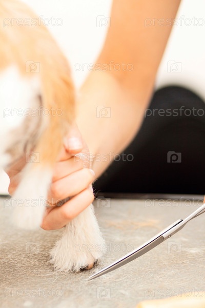 Парикмахер стрижет собаку породы Джек-Рассел терьер