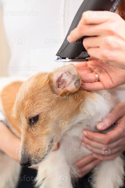 Парикмахер стрижет собаку породы Джек-Рассел терьер