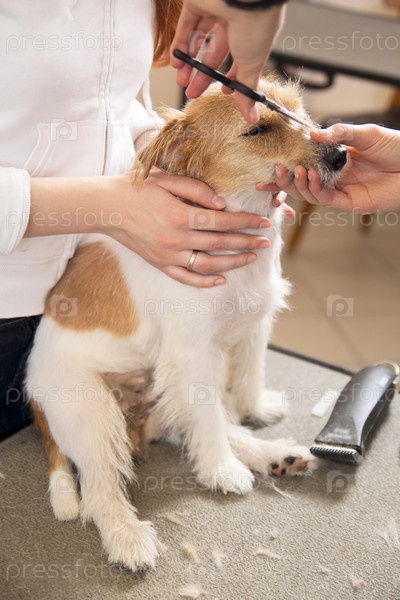 Парикмахер стрижет Джек Рассел терьера