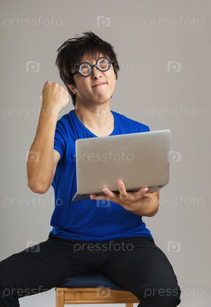 Счастливый парень с ноутбуком