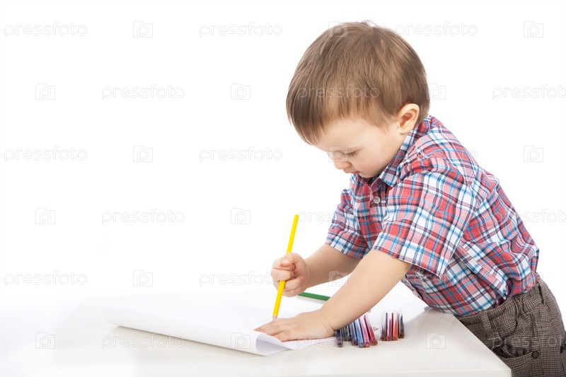 Маленький мальчик рисует карандашами