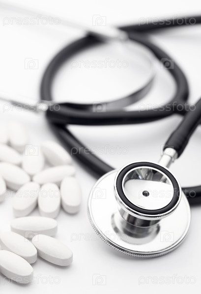 Медицинский стетоскоп и таблетки