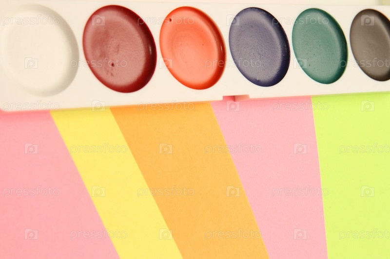 Акварельные краски на цветном фоне