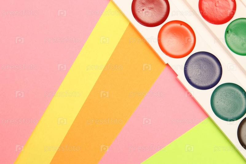 Акварельные краски на цветном фоне