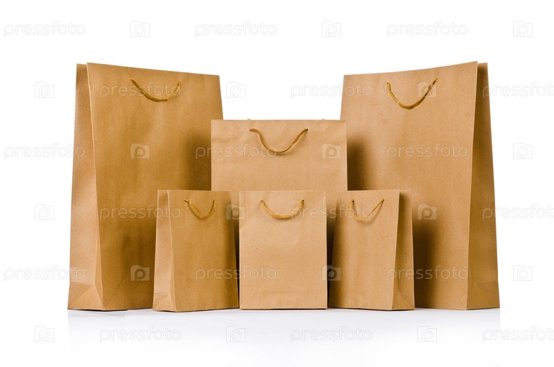 Бумажные пакеты, изолированные на белом