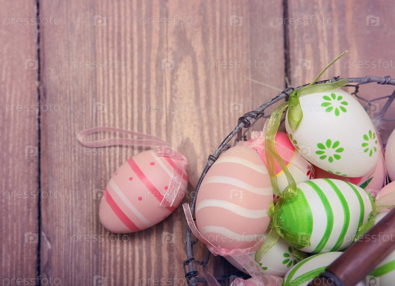 Пасхальные яйца в корзине