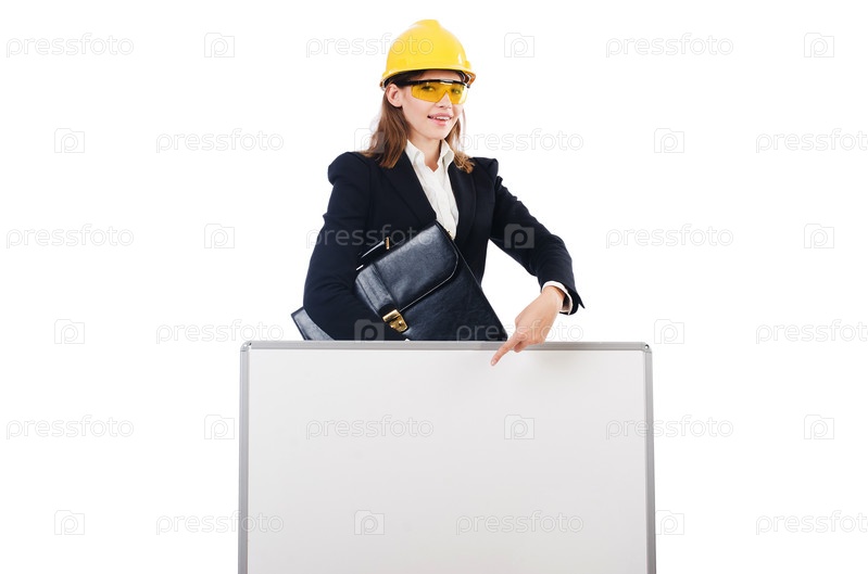 Женщина строитель с баннером